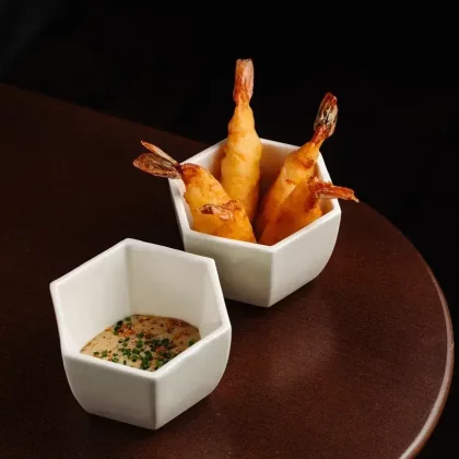 Хрустящие креветки, трюфельный соус