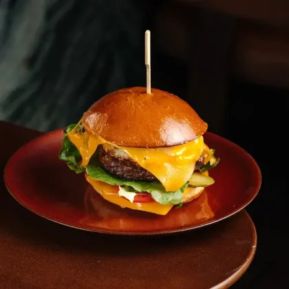 Бургер с говядиной, глазунья