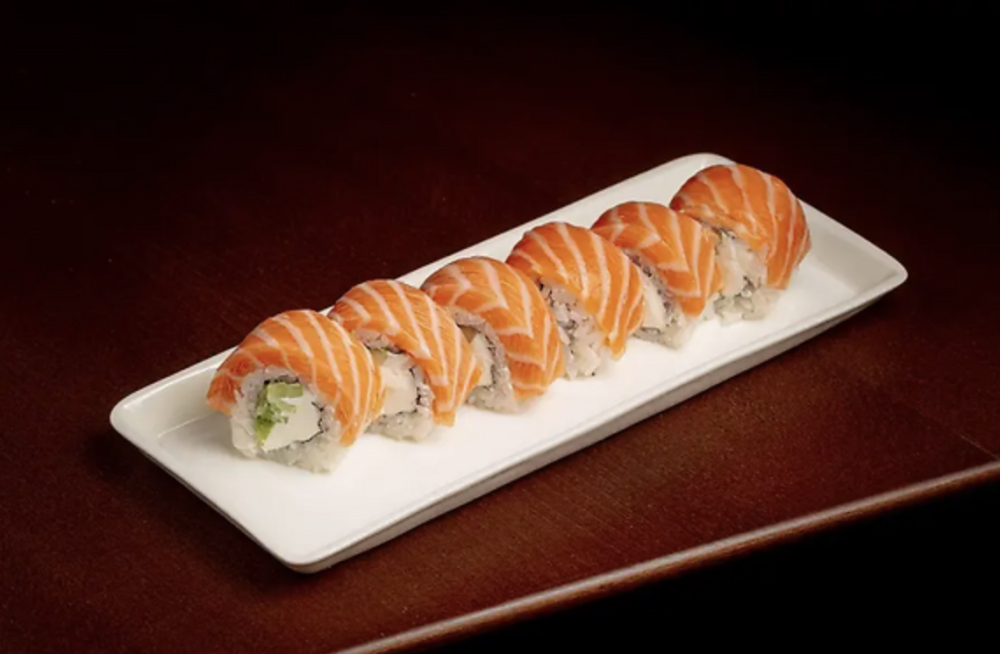 Рис для суши, водоросли нори, огурцы, филе лосося, авокадо хасс, сыр сливочный-творожный, имбирь маринованный, васаби порошок.