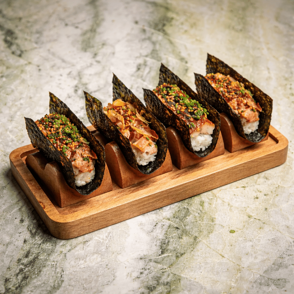 4 шт (тунец елофин, говядина спайси, угорь огурец, лосось спайси )