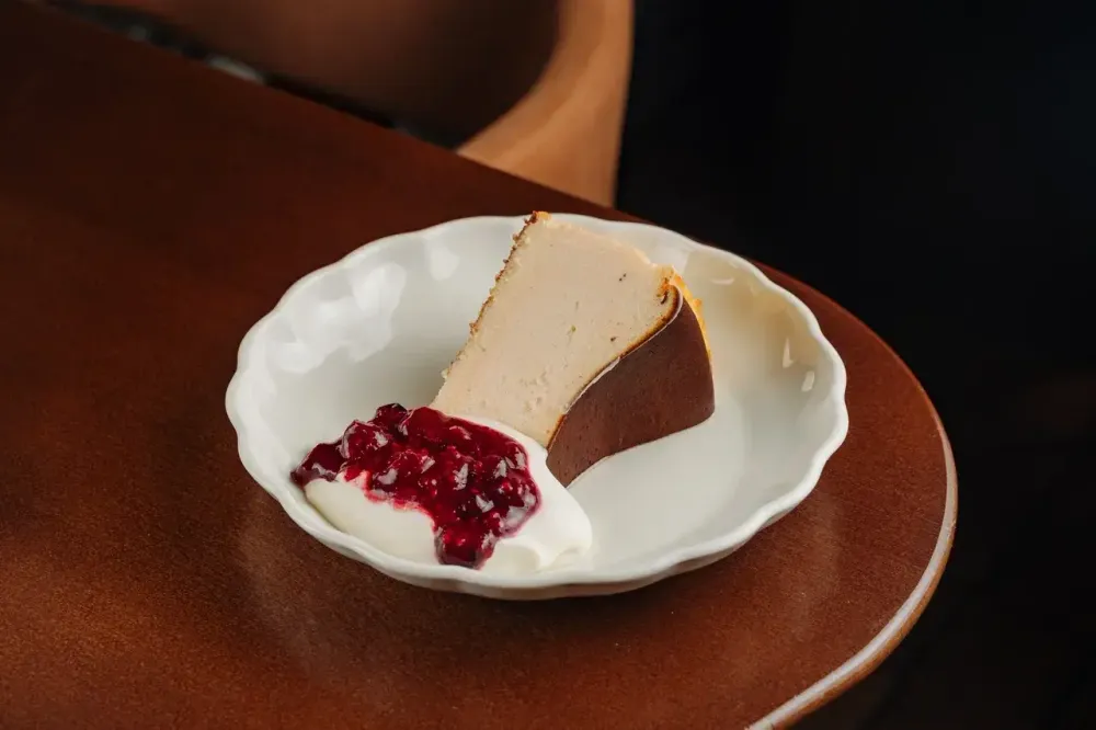 Сыр сливочный творожный, желток пастеризованный, яйцо куриное, ваниль, сахар, кукурузный крахмал, сливки, молоко, белый шоколад, желатин, морская соль, вишня, малина, чёрная смородина, красное вино, апельсиновый фреш.